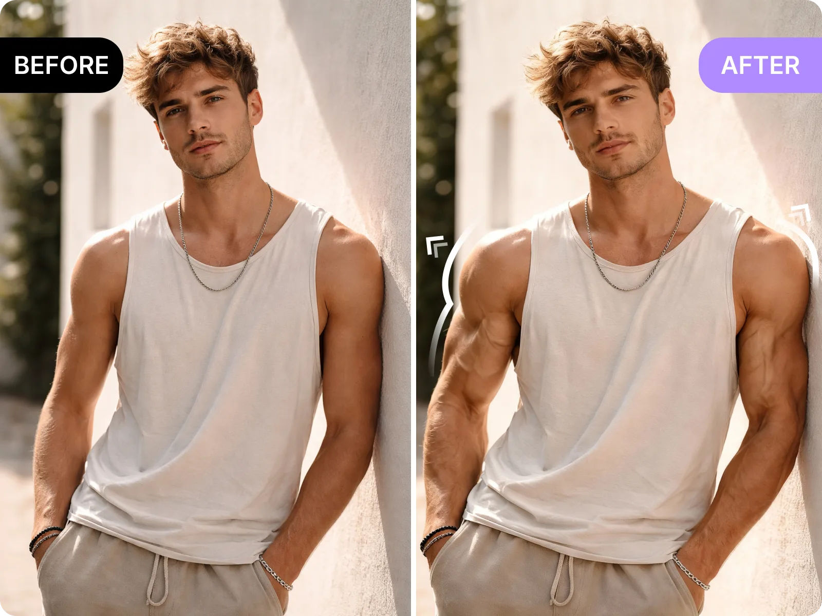 Increase muscle definition without changing pose or light.