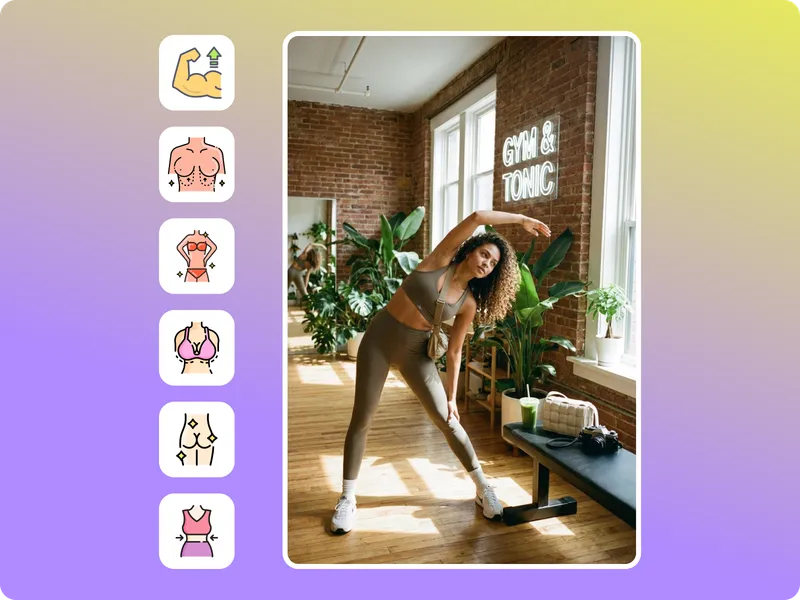 Edit with AI body editorSharper definition, consistent tone, and balanced proportions get more eyeballs on your social hero shots. Use the muscle-up and slim waist tools to create a cohesive grid, then pair each edit with copy that calls out how you feel better on camera.