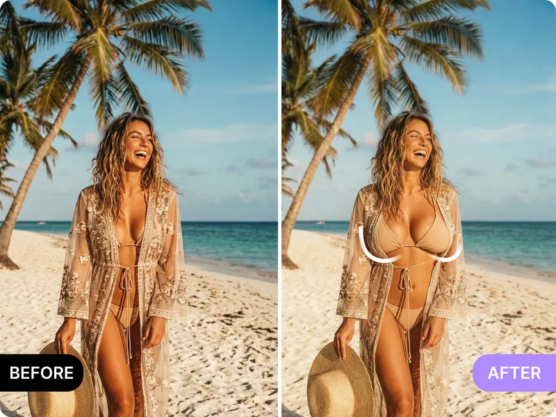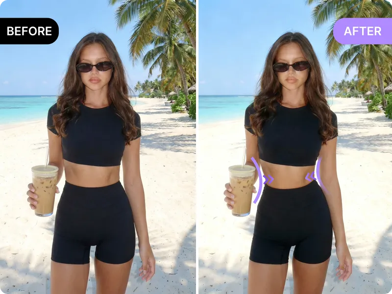 Tighten midsection lines while preserving perspective and lighting. Use it for swimwear, editorial, or marketing photos where a polished waistline matters.