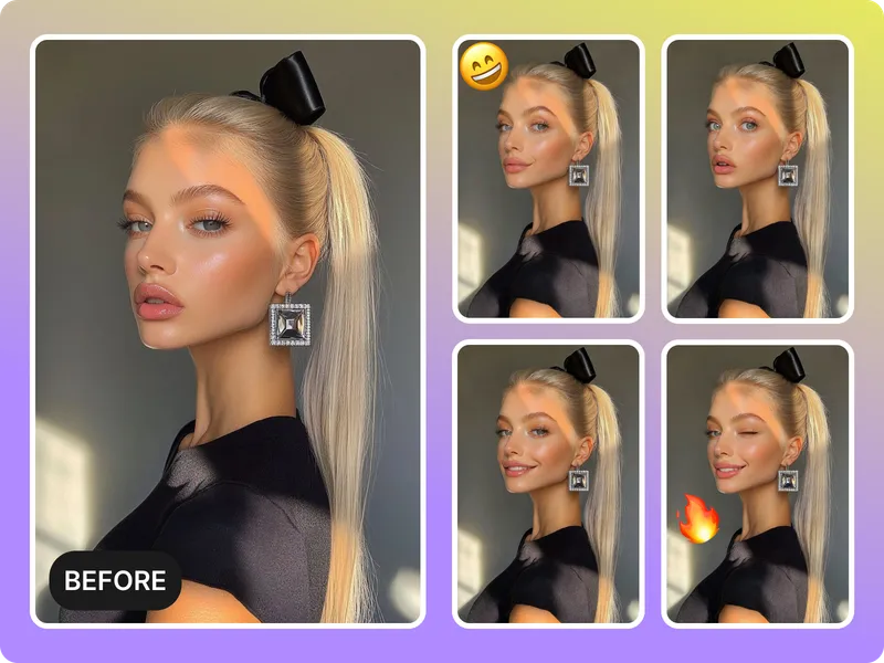 Keep lighting intactGenerate multiple expression versions for thumbnails, ads, or reels in minutes without reshoots. Export the best version straight to your channels.