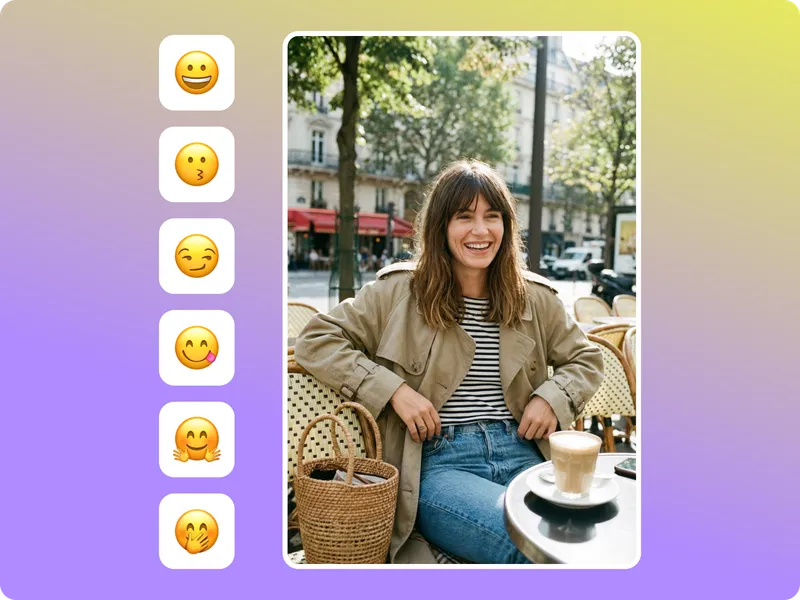 Use the AI expression changer to shift smiles, relax brows, or set a confident gaze with one click.